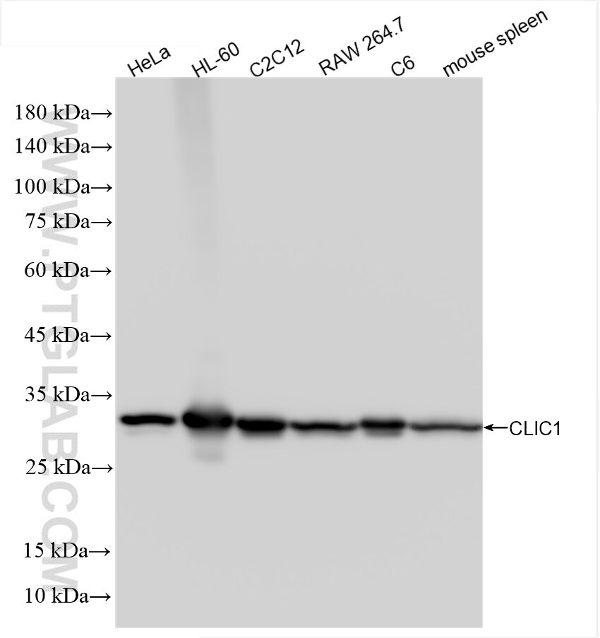 The CLIC1 antibody from Proteintech is a rabbit recombinant antibody to a recombinant protein of human CLIC1. This antibody recognizes human, mouse, rat antigen. The CLIC1 antibody has been validated for the following applications: WB, ELISA analysis.