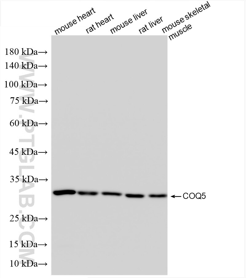 The COQ5 antibody from Proteintech is a rabbit recombinant antibody to a recombinant protein of human COQ5. This antibody recognizes human, mouse, rat antigen. The COQ5 antibody has been validated for the following applications: WB, ELISA analysis.