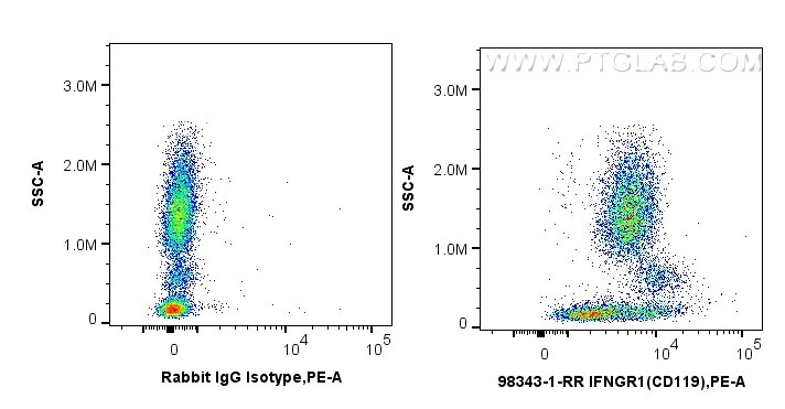 The IFNGR1/CD119 antibody from Proteintech is a rabbit recombinant antibody to a recombinant protein of human IFNGR1/CD119. This antibody recognizes human antigen. The IFNGR1/CD119 antibody has been validated for the following applications: FC analysis.