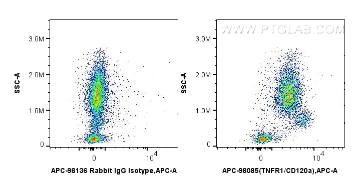 The TNFR1/CD120a antibody from Proteintech is a rabbit recombinant antibody to a recombinant protein of human TNFR1/CD120a. This antibody recognizes human antigen. The TNFR1/CD120a antibody has been validated for the following applications: FC analysis. This antibody is apc.