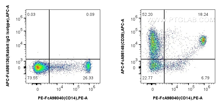The CD38 antibody from Proteintech is a rabbit recombinant antibody to a recombinant protein of human CD38. This antibody recognizes human antigen. The CD38 antibody has been validated for the following applications: FC analysis. This antibody is apc.