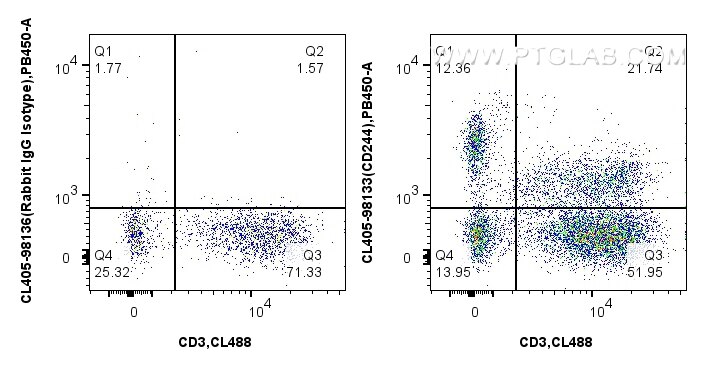 The CD244 antibody from Proteintech is a rabbit recombinant antibody to a recombinant protein of human CD244. This antibody recognizes human antigen. The CD244 antibody has been validated for the following applications: FC analysis. This antibody is coraliteR plus 405.