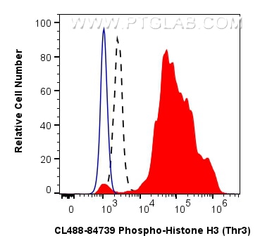 The Phospho-Histone H3 (Thr3) antibody from Proteintech is a rabbit recombinant antibody to a peptide of human Phospho-Histone H3 (Thr3). This antibody recognizes human, mouse, rat antigen. The Phospho-Histone H3 (Thr3) antibody has been validated for the following applications: FC (Intra) analysis. This antibody is coraliteR plus 488.