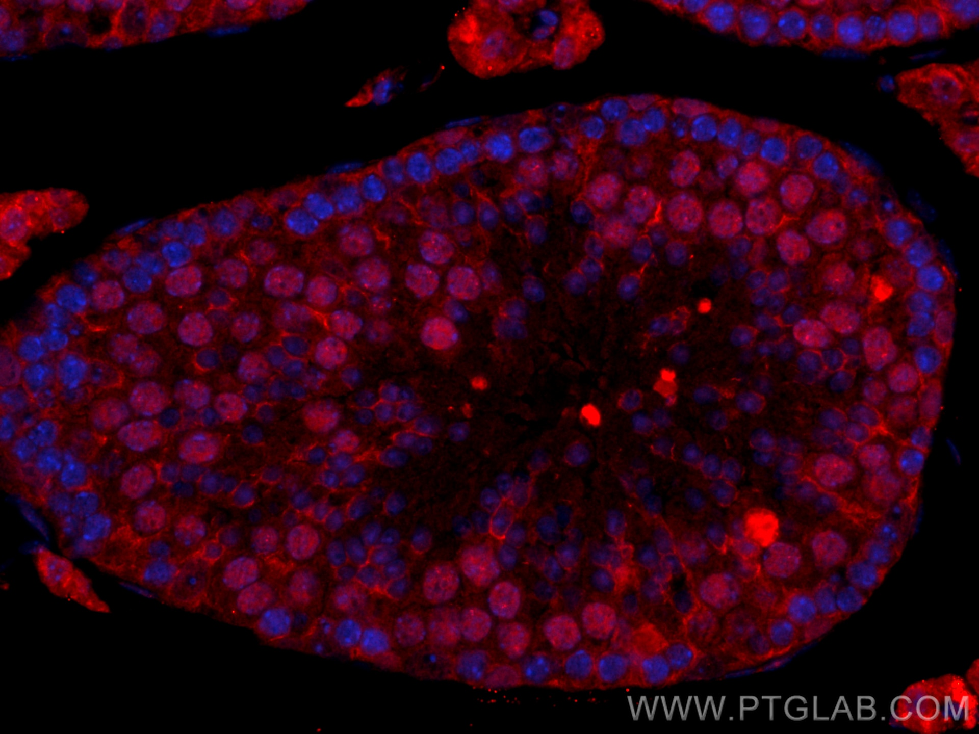 The METTL3 antibody from Proteintech is a rabbit polyclonal antibody to a recombinant protein of human METTL3. This antibody recognizes human, mouse, rat, monkey antigen. The METTL3 antibody has been validated for the following applications: IF-P analysis. This antibody is coraliteR594.