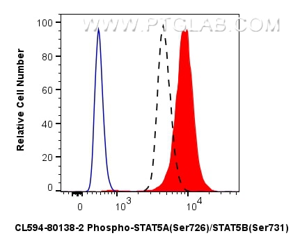 The Phospho-STAT5A (Ser726)/STAT5B (Ser731) antibody from Proteintech is a rabbit recombinant antibody to a peptide of human Phospho-STAT5A (Ser726)/STAT5B (Ser731). This antibody recognizes human antigen. The Phospho-STAT5A (Ser726)/STAT5B (Ser731) antibody has been validated for the following applications: FC (Intra) analysis. This antibody is coraliteR594.