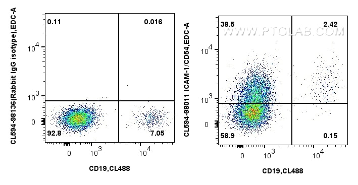 The ICAM-1/CD54 antibody from Proteintech is a rabbit recombinant antibody to a recombinant protein of human ICAM-1/CD54. This antibody recognizes human antigen. The ICAM-1/CD54 antibody has been validated for the following applications: FC analysis. This antibody is coraliteR594.