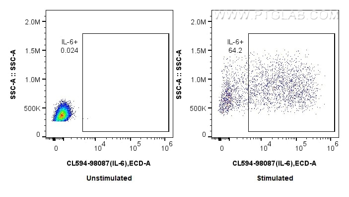The IL-6 antibody from Proteintech is a rabbit recombinant antibody to a recombinant protein of human IL-6. This antibody recognizes human antigen. The IL-6 antibody has been validated for the following applications: FC (Intra) analysis. This antibody is coraliteR594.