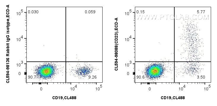 The CD23 antibody from Proteintech is a rabbit recombinant antibody to a recombinant protein of human CD23. This antibody recognizes human antigen. The CD23 antibody has been validated for the following applications: FC analysis. This antibody is coraliteR594.