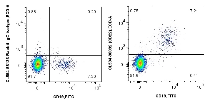 The CD22 antibody from Proteintech is a rabbit recombinant antibody to a recombinant protein of human CD22. This antibody recognizes human antigen. The CD22 antibody has been validated for the following applications: FC analysis. This antibody is coraliteR594.