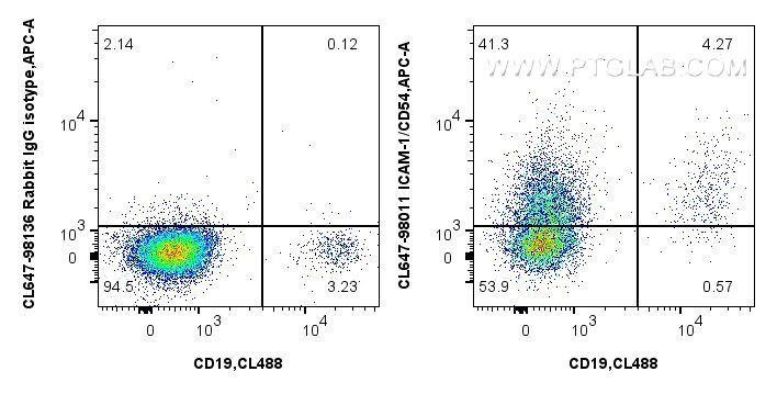 The ICAM-1/CD54 antibody from Proteintech is a rabbit recombinant antibody to a recombinant protein of human ICAM-1/CD54. This antibody recognizes human antigen. The ICAM-1/CD54 antibody has been validated for the following applications: FC analysis. This antibody is coraliteR plus 647.