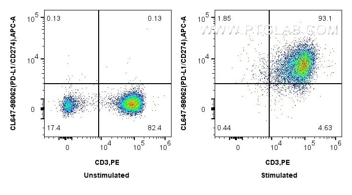The PD-L1/CD274 antibody from Proteintech is a rabbit recombinant antibody to a recombinant protein of human PD-L1/CD274. This antibody recognizes human antigen. The PD-L1/CD274 antibody has been validated for the following applications: FC analysis. This antibody is coraliteR plus 647.