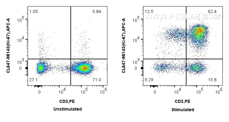 The Ki-67 antibody from Proteintech is a rabbit recombinant antibody to a peptide of human Ki-67. This antibody recognizes human antigen. The Ki-67 antibody has been validated for the following applications: FC (Intra) analysis. This antibody is coraliteR plus 647.
