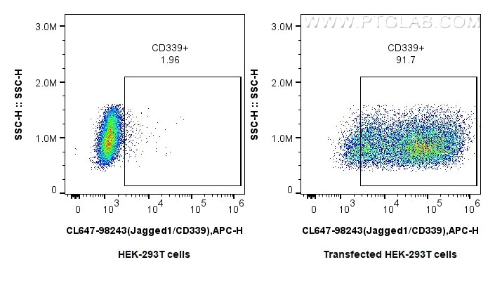 The Jagged1/CD339 antibody from Proteintech is a rabbit recombinant antibody to a recombinant protein of human Jagged1/CD339. This antibody recognizes human antigen. The Jagged1/CD339 antibody has been validated for the following applications: FC analysis. This antibody is coraliteR plus 647.