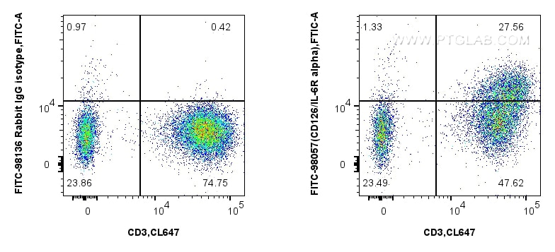 The CD126/IL-6R alpha antibody from Proteintech is a rabbit recombinant antibody to a recombinant protein of human CD126/IL-6R alpha. This antibody recognizes human antigen. The CD126/IL-6R alpha antibody has been validated for the following applications: FC analysis. This antibody is fitc plus.