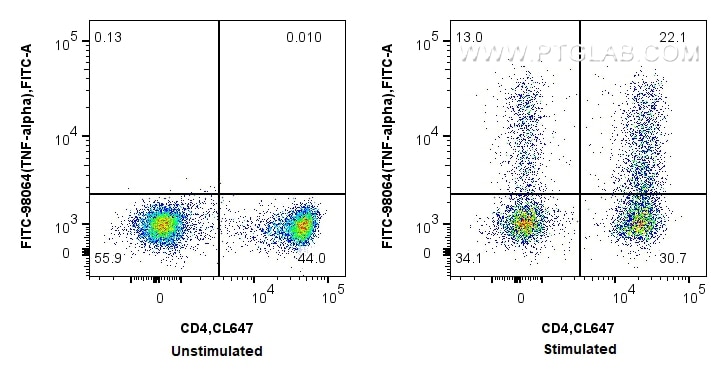 The TNF-alpha antibody from Proteintech is a rabbit recombinant antibody to a recombinant protein of human TNF-alpha. This antibody recognizes human antigen. The TNF-alpha antibody has been validated for the following applications: FC (Intra) analysis. This antibody is fitc plus.