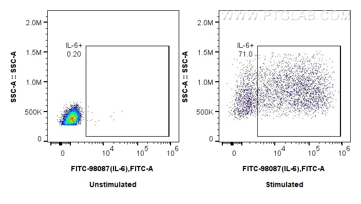 The IL-6 antibody from Proteintech is a rabbit recombinant antibody to a recombinant protein of human IL-6. This antibody recognizes human antigen. The IL-6 antibody has been validated for the following applications: FC (Intra) analysis. This antibody is fitc plus.