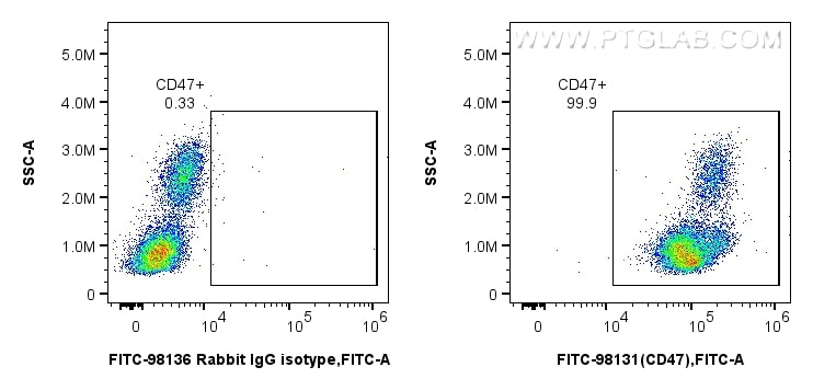 The CD47 antibody from Proteintech is a rabbit recombinant antibody to a recombinant protein of human CD47. This antibody recognizes human antigen. The CD47 antibody has been validated for the following applications: FC analysis. This antibody is fitc plus.