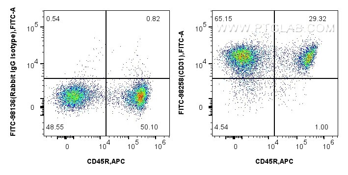 The CD31 antibody from Proteintech is a rabbit recombinant antibody to a recombinant protein of mouse CD31. This antibody recognizes mouse antigen. The CD31 antibody has been validated for the following applications: FC analysis. This antibody is fitc plus.