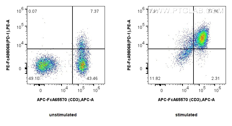 The PD-1/CD279 antibody from Proteintech is a rabbit recombinant antibody to a recombinant protein of human PD-1/CD279. This antibody recognizes human antigen. The PD-1/CD279 antibody has been validated for the following applications: FC analysis. This antibody is pe.