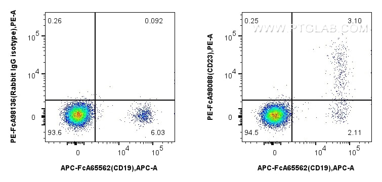 The CD23 antibody from Proteintech is a rabbit recombinant antibody to a recombinant protein of human CD23. This antibody recognizes human antigen. The CD23 antibody has been validated for the following applications: FC analysis. This antibody is pe.