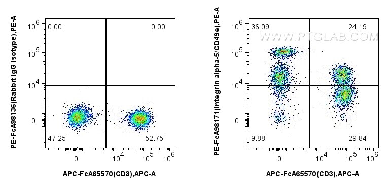 The Integrin alpha-5/CD49e antibody from Proteintech is a rabbit recombinant antibody to a recombinant protein of human Integrin alpha-5/CD49e. This antibody recognizes human antigen. The Integrin alpha-5/CD49e antibody has been validated for the following applications: FC analysis. This antibody is pe.