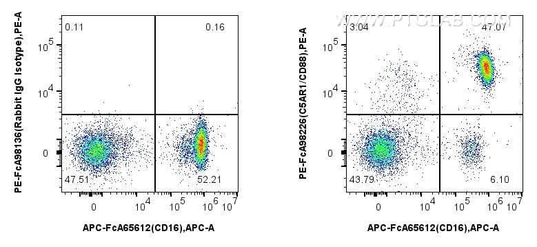 The C5AR1/CD88 antibody from Proteintech is a rabbit recombinant antibody to a recombinant protein of human C5AR1/CD88. This antibody recognizes human antigen. The C5AR1/CD88 antibody has been validated for the following applications: FC analysis. This antibody is pe.