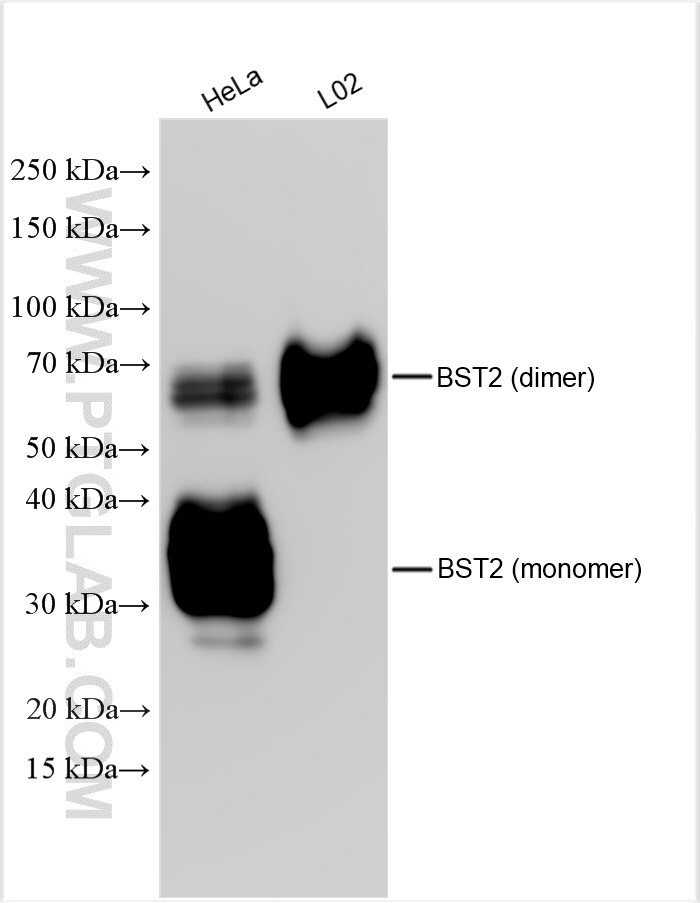 The BST2 antibody from Proteintech is a rabbit polyclonal antibody to a recombinant protein of human BST2. This antibody recognizes human antigen. The BST2 antibody has been validated for the following applications: WB, IHC, IF/ICC, ELISA analysis.