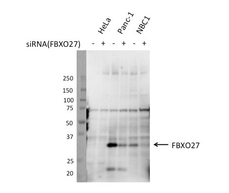 The FBXO27 antibody from Proteintech is a rabbit polyclonal antibody to a recombinant protein of human FBXO27. This antibody recognizes human antigen. The FBXO27 antibody has been validated for the following applications: WB, IHC, IP, ELISA analysis.