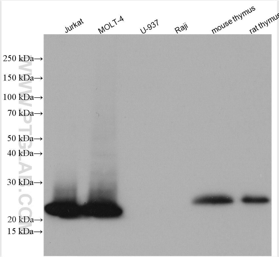 The CD3 antibody from Proteintech is a rabbit polyclonal antibody to a recombinant protein of human CD3. This antibody recognizes human, mouse, rat, pig antigen. The CD3 antibody has been validated for the following applications: WB, IHC, IF-P, IF-Fro, IP, ELISA analysis.