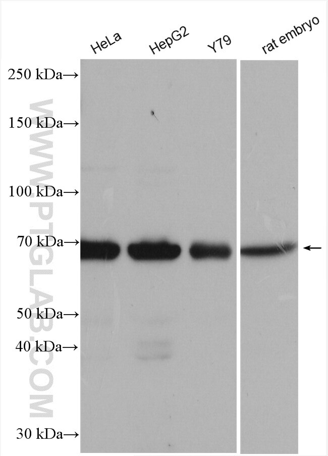 The SENP3 antibody from Proteintech is a rabbit polyclonal antibody to a recombinant protein of human SENP3. This antibody recognizes human, rat antigen. The SENP3 antibody has been validated for the following applications: WB, IHC, IP, ELISA analysis.