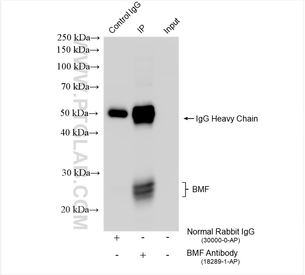 The BMF antibody from Proteintech is a rabbit polyclonal antibody to a peptide of human BMF. This antibody recognizes human antigen. The BMF antibody has been validated for the following applications: IP, ELISA analysis.