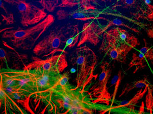 Neuron-Specific Enolase (NSE) Left panel: NSE-positive neuron (green); GFAP-positive astrocytes (red). Right panel: Western.