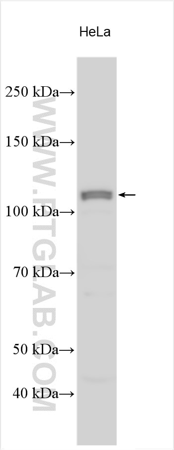 Various lysates were subjected to SDS PAGE followed by western blot with 18355-1-AP (PLD1 antibody) at dilution of 1:2000 incubated at room temperature for 1.5 hours.