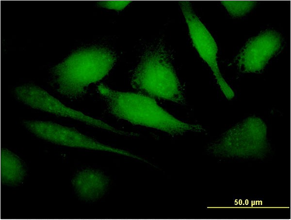 Immunofluorescence of monoclonal antibody to HBXIP on HeLa cell . [antibody concentration 10 ug/ml]