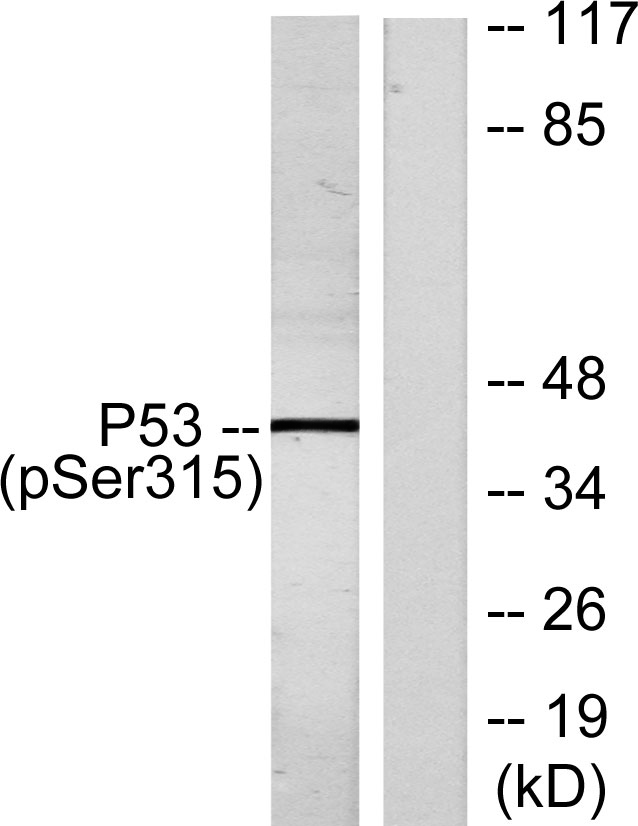 Western Blot analysis of various cells using Phospho-p53 (S315) Polyclonal Antibody diluted at 1:1000