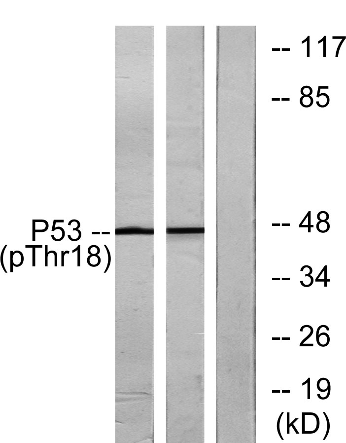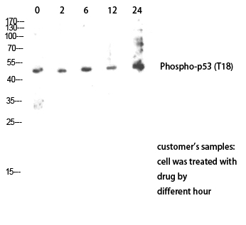 Western Blot analysis of customer's using Phospho-p53 (T18) Polyclonal Antibody. Antibody was diluted at 1:2000
