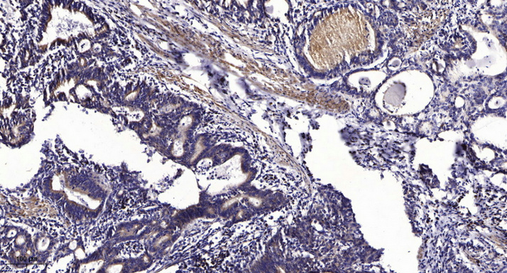 Immunohistochemical analysis of paraffin-embedded human Gastric adenocarcinoma. 1, Antibody was diluted at 1:200(4° overnight). 2, Tris-EDTA,pH9.0 was used for antigen retrieval. 3,Secondary antibody was diluted at 1:200(room temperature, 45min).