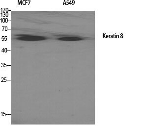 Western Blot analysis of various cells using Cytokeratin 8 Polyclonal Antibody diluted at 1:2000