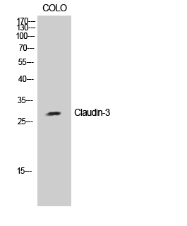 Western Blot analysis of COLO cells using Claudin-3 Polyclonal Antibody diluted at 1:2000