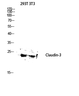 Western blot analysis of 293T 3T3 lysis using Claudin-3 antibody. Antibody was diluted at 1:2000