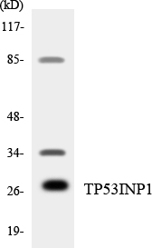 Western blot analysis of the lysates from HT-29 cells using TP53INP1 antibody.