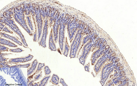 Immunohistochemical analysis of paraffin-embedded Mouse-colon tissue. 1,Cleaved-Caspase-3 p17 (D175) Polyclonal Antibody was diluted at 1:200(4°C,overnight). 2, Sodium citrate pH 6.0 was used for antibody retrieval(>98°C,20min). 3,Secondary antibody was diluted at 1:200(room tempeRature, 30min). Negative control was used by secondary antibody only.