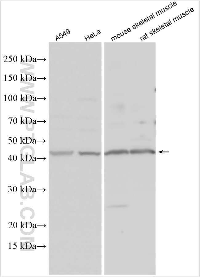 The OGG1 antibody from Proteintech is a rabbit polyclonal antibody to a recombinant protein of human OGG1. This antibody recognizes human, mouse, rat antigen. The OGG1 antibody has been validated for the following applications: WB, IHC, IF/ICC, IP, ELISA analysis.