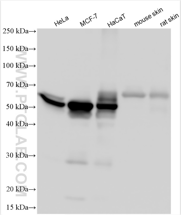 The Cytokeratin 8 antibody from Proteintech is a rabbit polyclonal antibody to a recombinant protein of human Cytokeratin 8. This antibody recognizes human, mouse, rat antigen. The Cytokeratin 8 antibody has been validated for the following applications: WB, IHC, IF/ICC, IF-P, FC (Intra), IP, ELISA analysis.