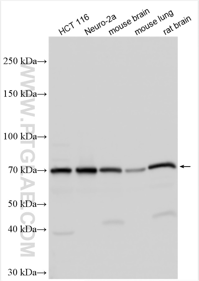 The FOXP2 antibody from Proteintech is a rabbit polyclonal antibody to a recombinant protein of human FOXP2. This antibody recognizes human, mouse, rat antigen. The FOXP2 antibody has been validated for the following applications: WB, IP, ELISA analysis.