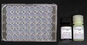 @BONE RESORPTION ASSAY PLATE 48(骨吸収活性評価プレート 48、Cat. BRA-48P、滅菌済):1 枚リン酸カルシウムを固層化した 48well プレートです。 ABONE RESORPTION ASSAY FACS(骨吸収活性評価用 FACS、Cat. BRA-FACS1、PBS 溶液、滅菌済、冷蔵保存):1 本リン酸カルシウムを標識する蛍光標識コンドロイチン硫酸(FACS)です。 BBONE RESORPTION ASSAY BUFFER(骨吸収活性評価用緩衝液、滅菌済、Cat. BRA-B1、冷蔵保存):1 本蛍光強度を測定する際に使用する緩衝液です。