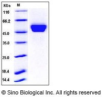 calculated molecular mass: 37.3 kDa SDS-PAGE under reducing conditions: 45-50 kDa