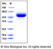 calculated molecular mass: 38 kDa SDS-PAGE under reducing conditions: 50-55 kDa