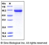 calculated molecular mass: 59.2 kDa SDS-PAGE under reducing conditions: 65 kDa