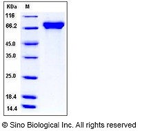calculated molecular mass: 59 kDa SDS-PAGE under reducing conditions: 70-80 kDa